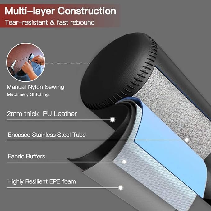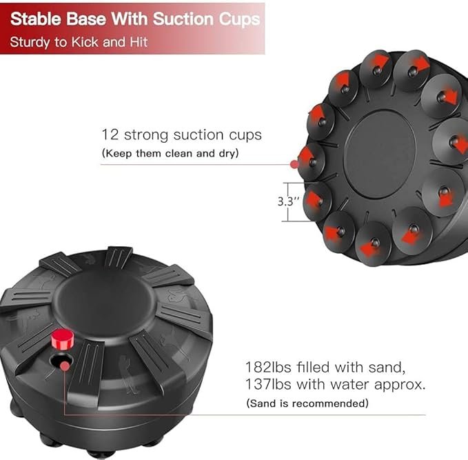 - High-quality material: Stainless steel tube stand is encased in multi-layer construction: 2mm thickened PU leather striking surface, high-density EPE foam, eco-friendly fabric buffer. Tear-resistant, fast rebound, is sure to withstand long-term onslaught of kicks and punches